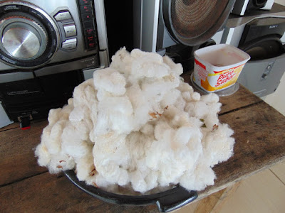 plástico, desses de 20 litros, e resolvi apanhar o algodão. Um formigueiro