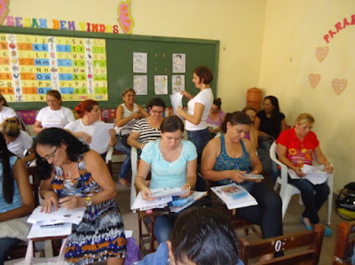 Todos os participantes da oficina receberam um kit contendo o livro ACORDA CORDEL, o CD com 10 faixas (tiragem feita especialmente para esse evento) e caixa com 12 folhetos de vários autores. Fizemos a leitura coletiva do folheto "A intriga do cachorro com o gato" e explicamos a diferença entre CORDEL e POESIA MATUTA. Os professores se encantaram com a declamação do poema "EU E MARIA" do poeta Geraldo Amâncio, que coincidentemente nos ligou no momento da oficina dizendo que estava assistindo entrevista de Arievaldo Viana na TV Cultura.